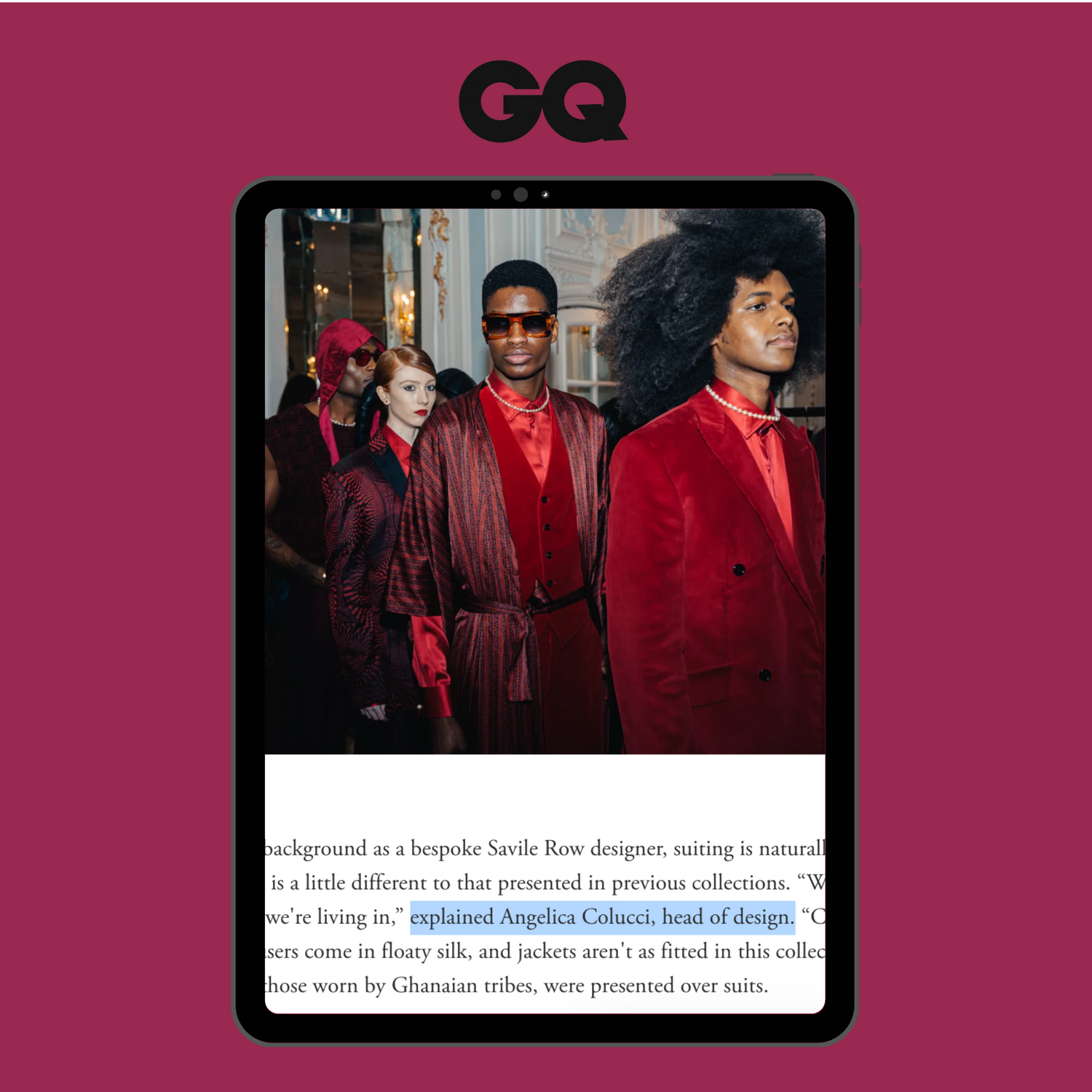 Angelica interviewed by Zak Maoui for GQ, discussing the collection she led as Head of Design & Production for Ozwald Boateng during London Fashion Week.