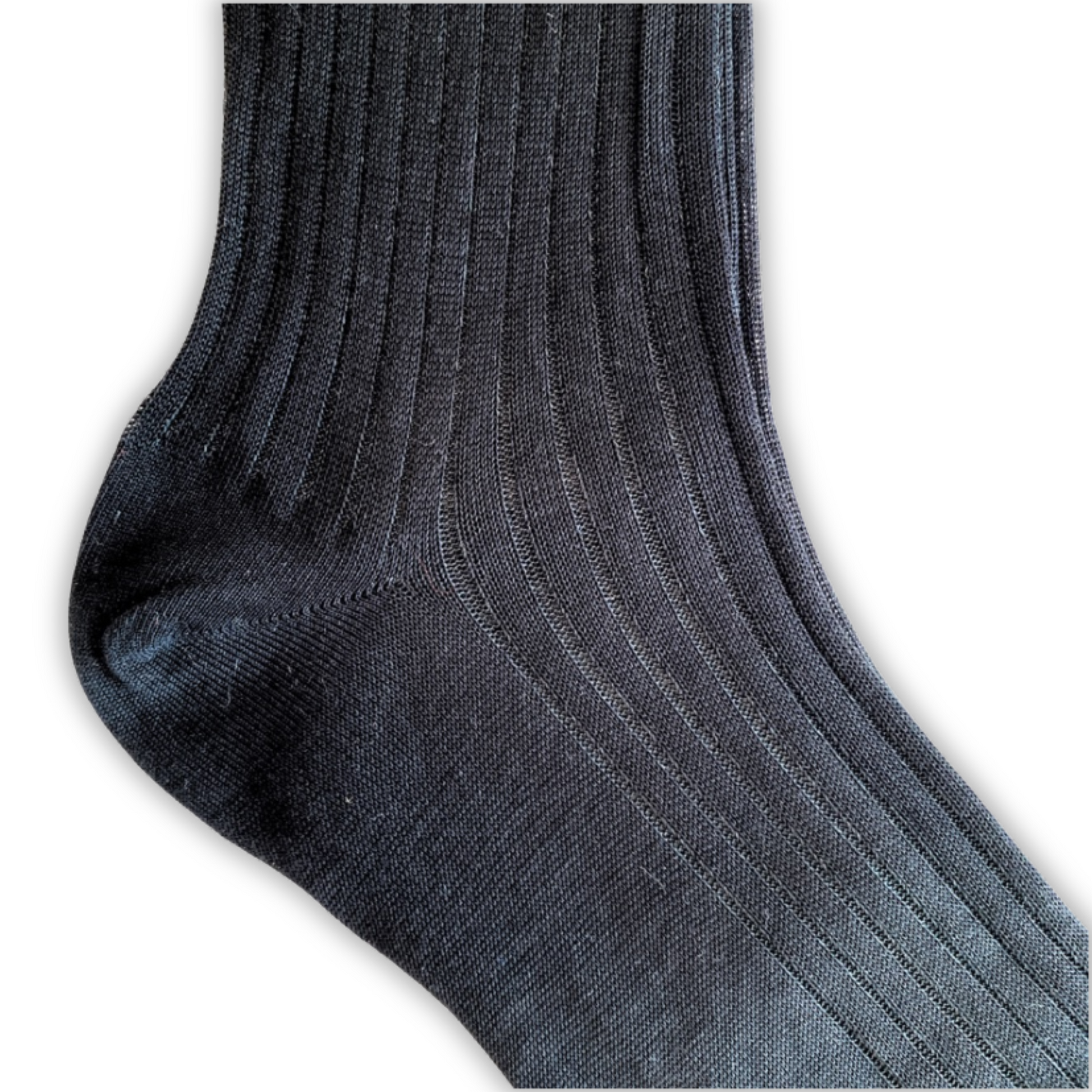 Elevate your essentials with these Italian-made black mid-calf length socks, distinguished by a subtle grey shadow rib.