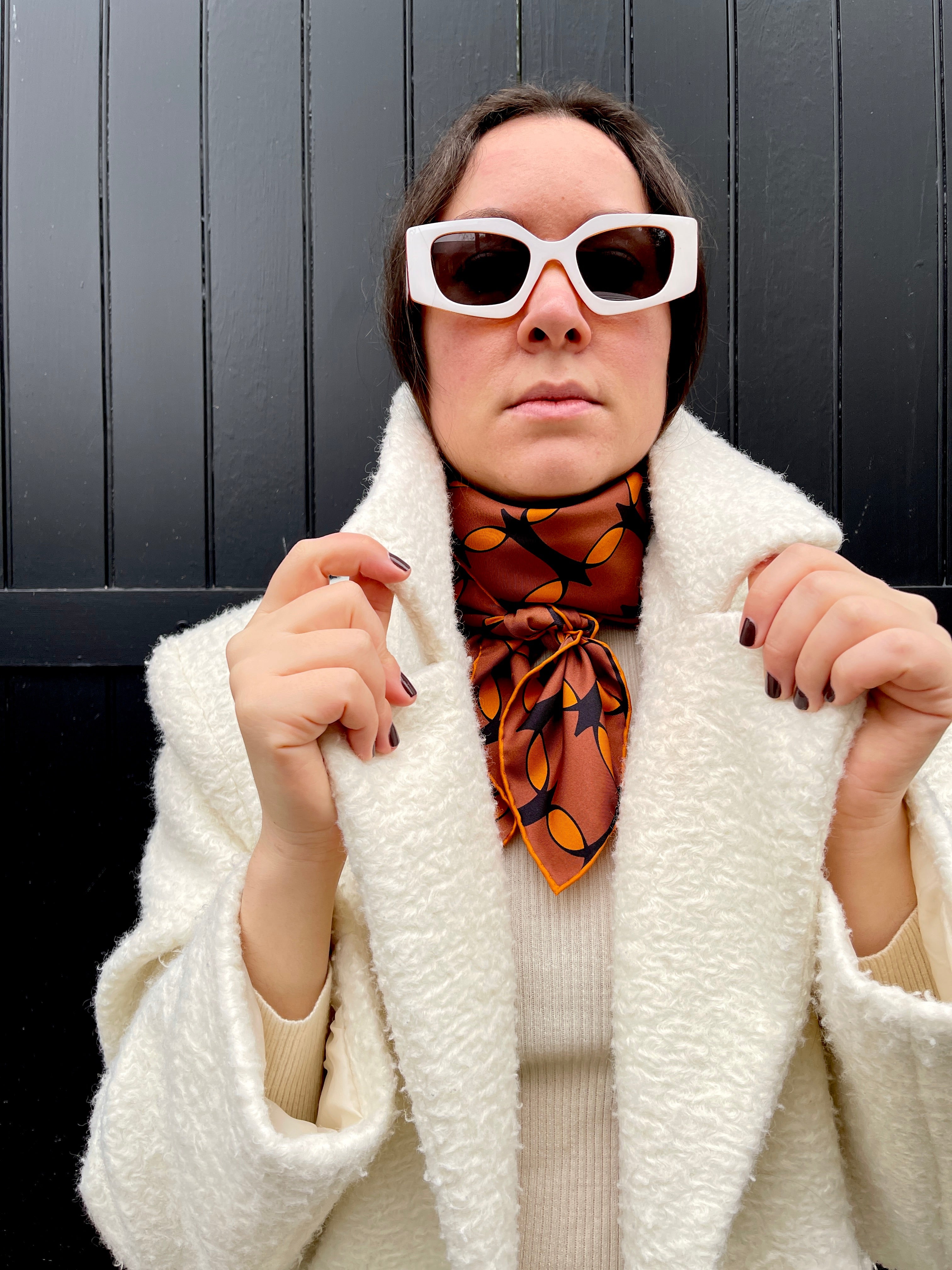 Whether draped over the shoulders, knotted at the neck, or tucked neatly into a blazer, this piece adds just the right touch of sophistication to any look.