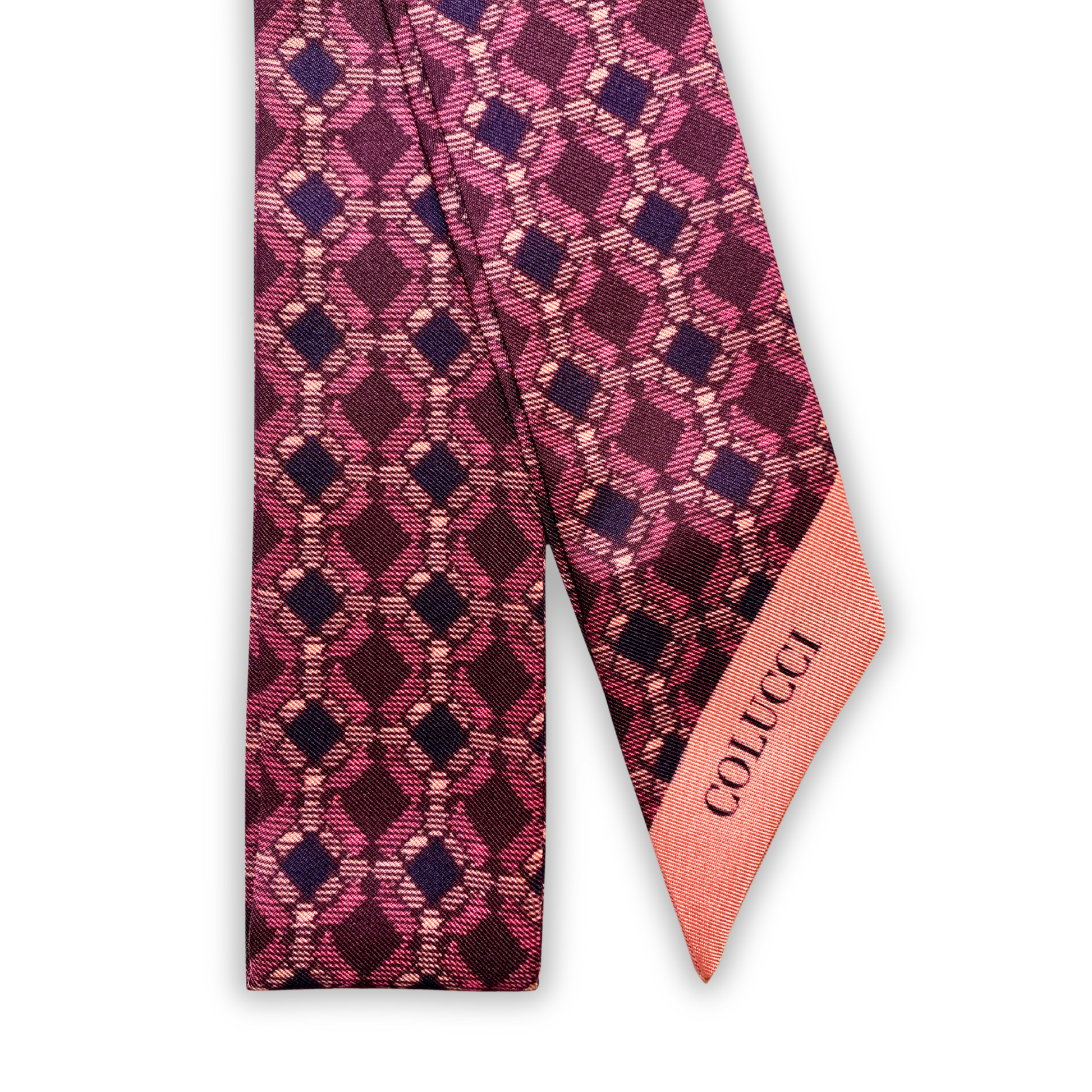 Indulge in the timeless elegance of the Maroon & Blush Sinatra Silk Twilly—a refined accessory crafted from 100% silk twill and printed in Macclesfield, the historic heart of English silk production. With its rich maroon and blush pattern, this twilly combines bold design with heritage craftsmanship.