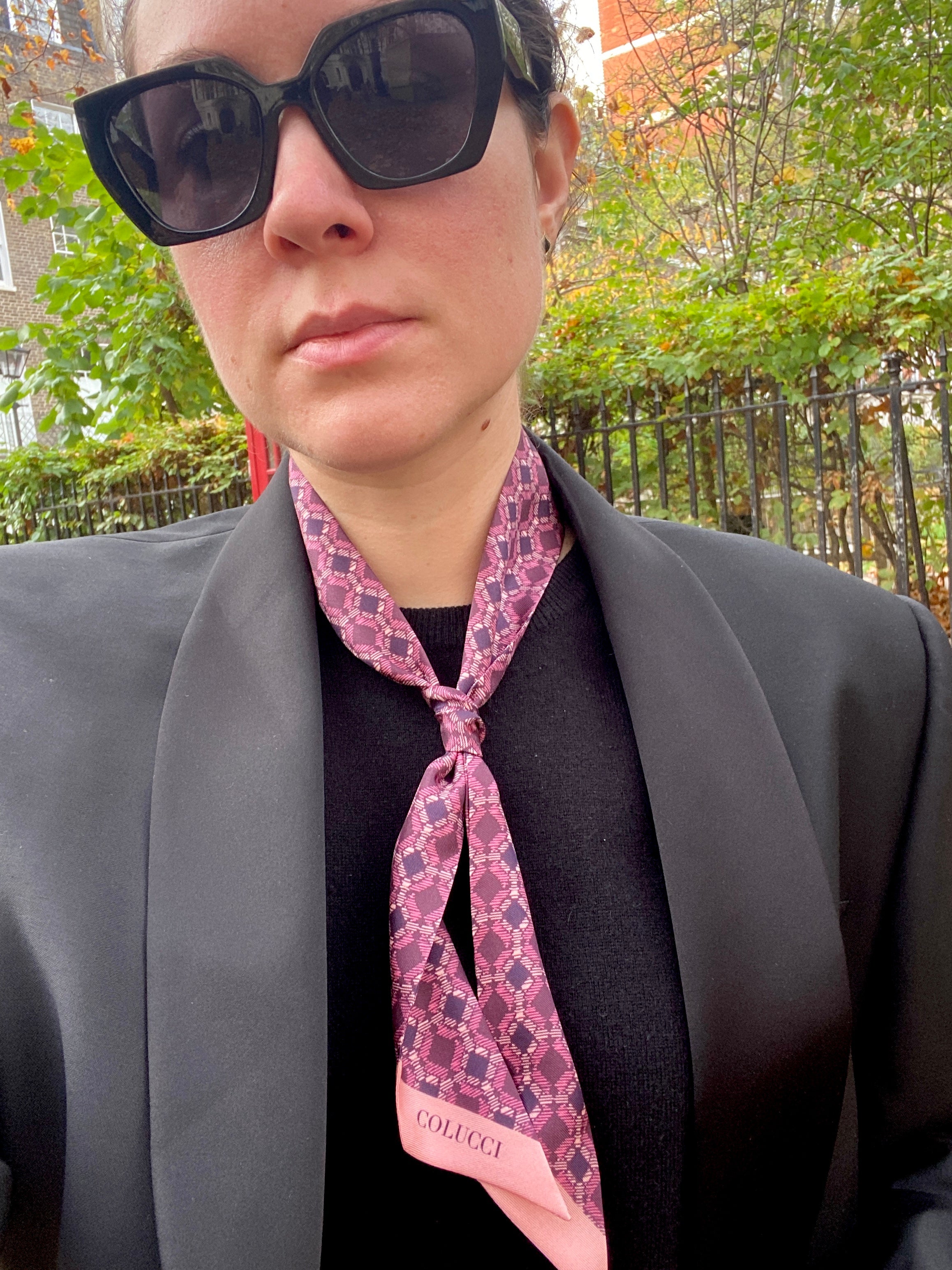 Cut from fine silk twill for a lustrous finish and soft hand, it’s the perfect versatile styling piece—wear it tied at the neck, wrapped around your wrist, threaded through belt loops, or knotted on your favourite handbag for an effortless touch of sophistication.