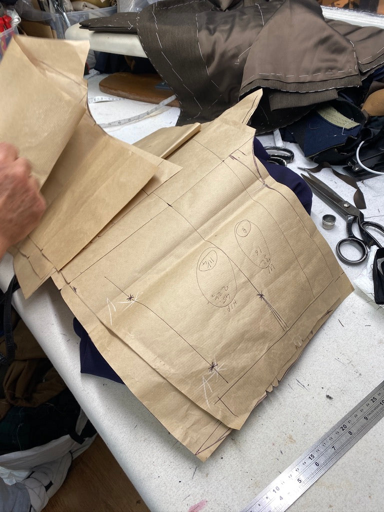 Aside from the custom paper pattern and hand-cutting of the cloth, distinctly unique elements are sewn by hand, including the elegant stitching of the waistband and top stitching, details for connoisseurs to relish.