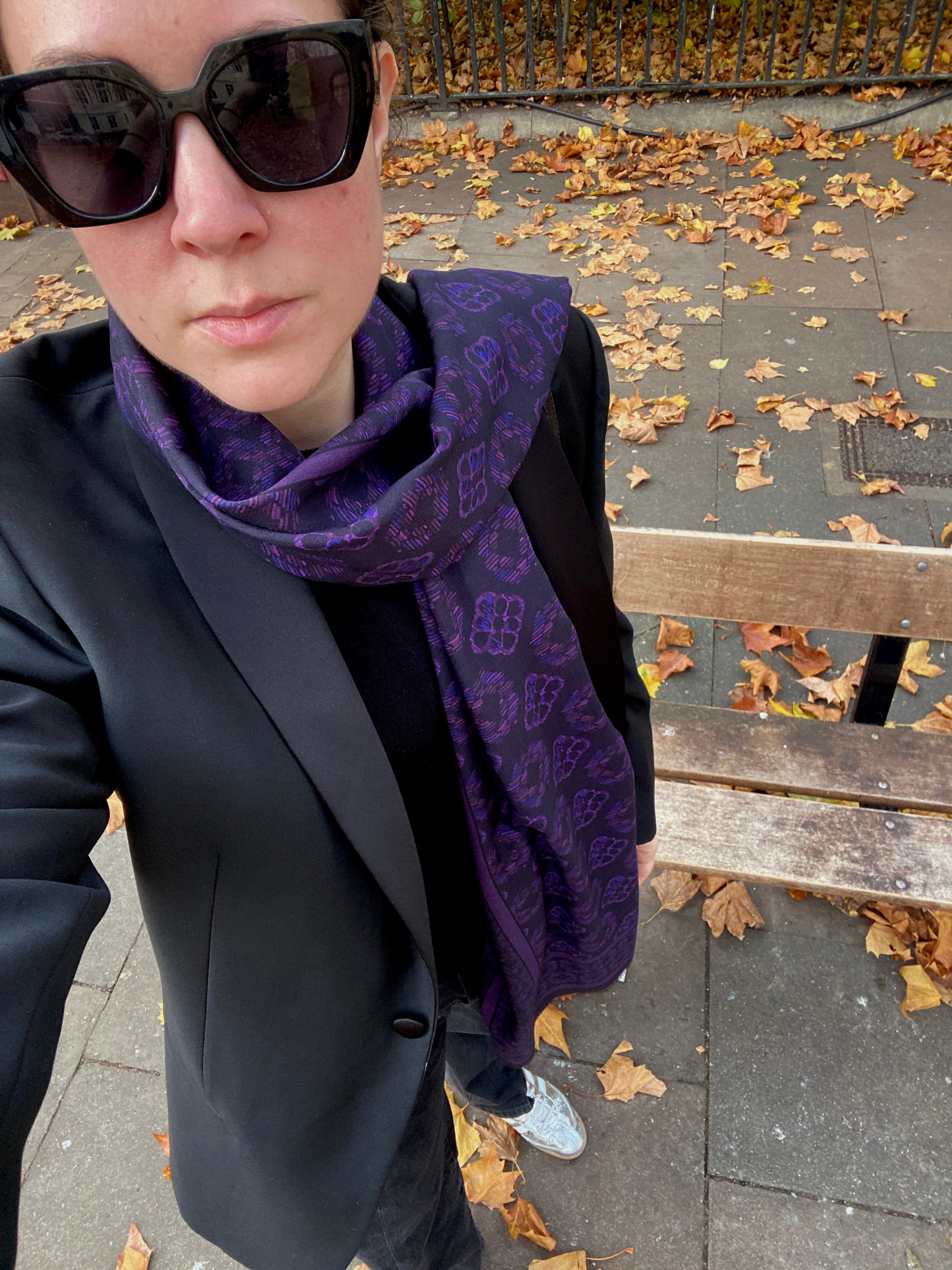Whether knotted at the neck, draped over the shoulders, or styled with a blazer, the Duet shawl adds an effortless touch of sophistication to any look.