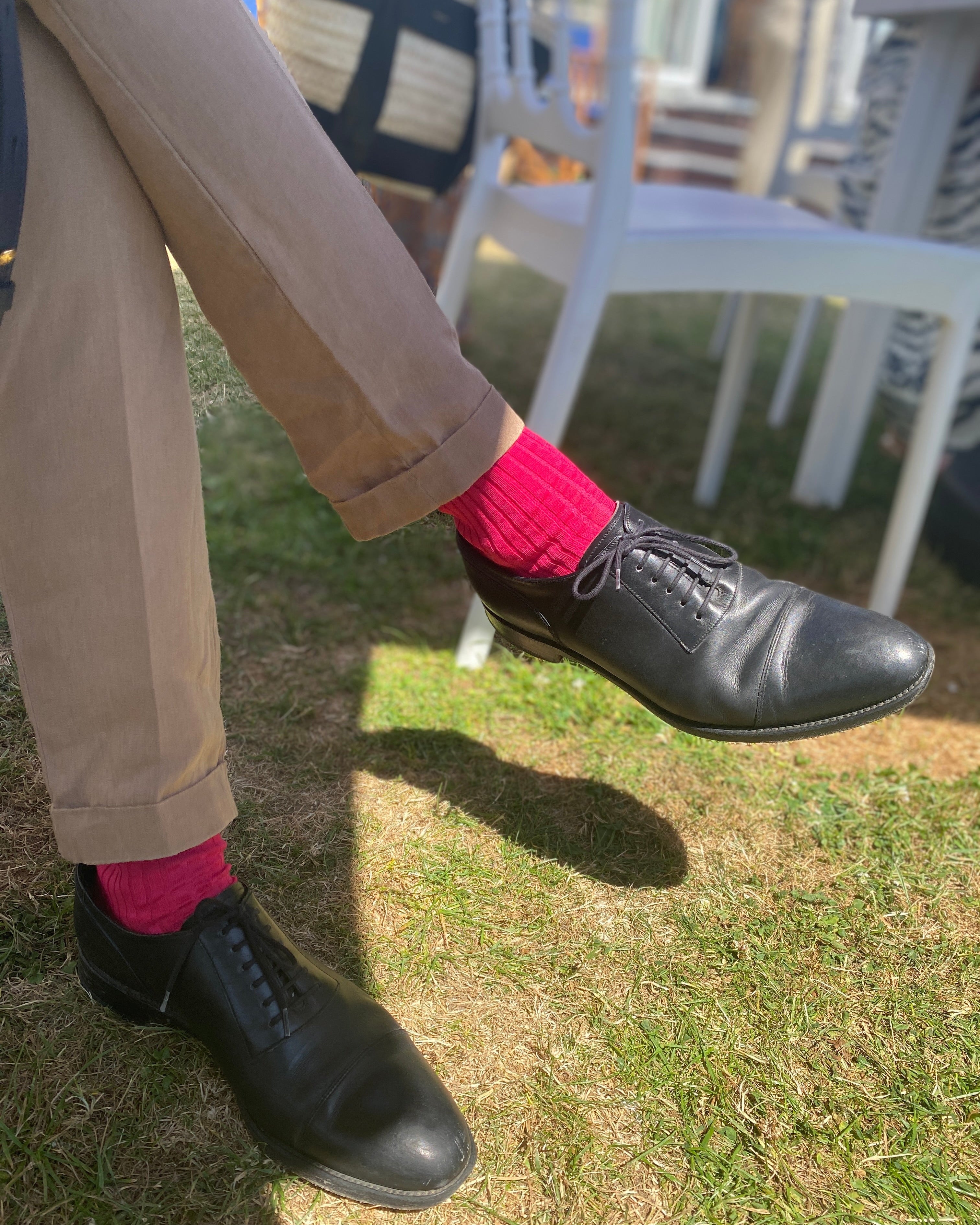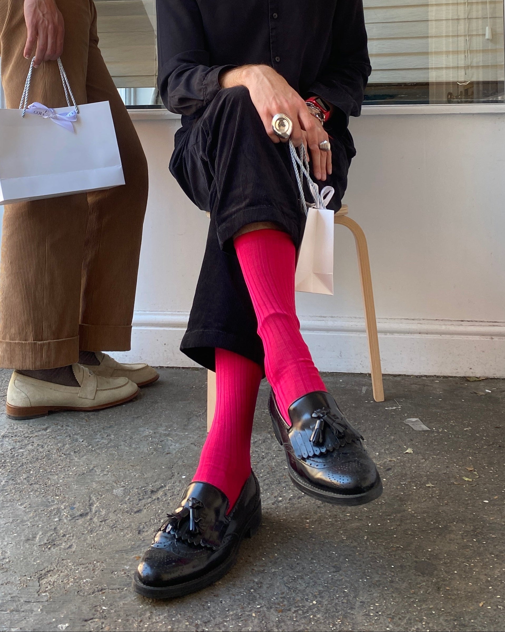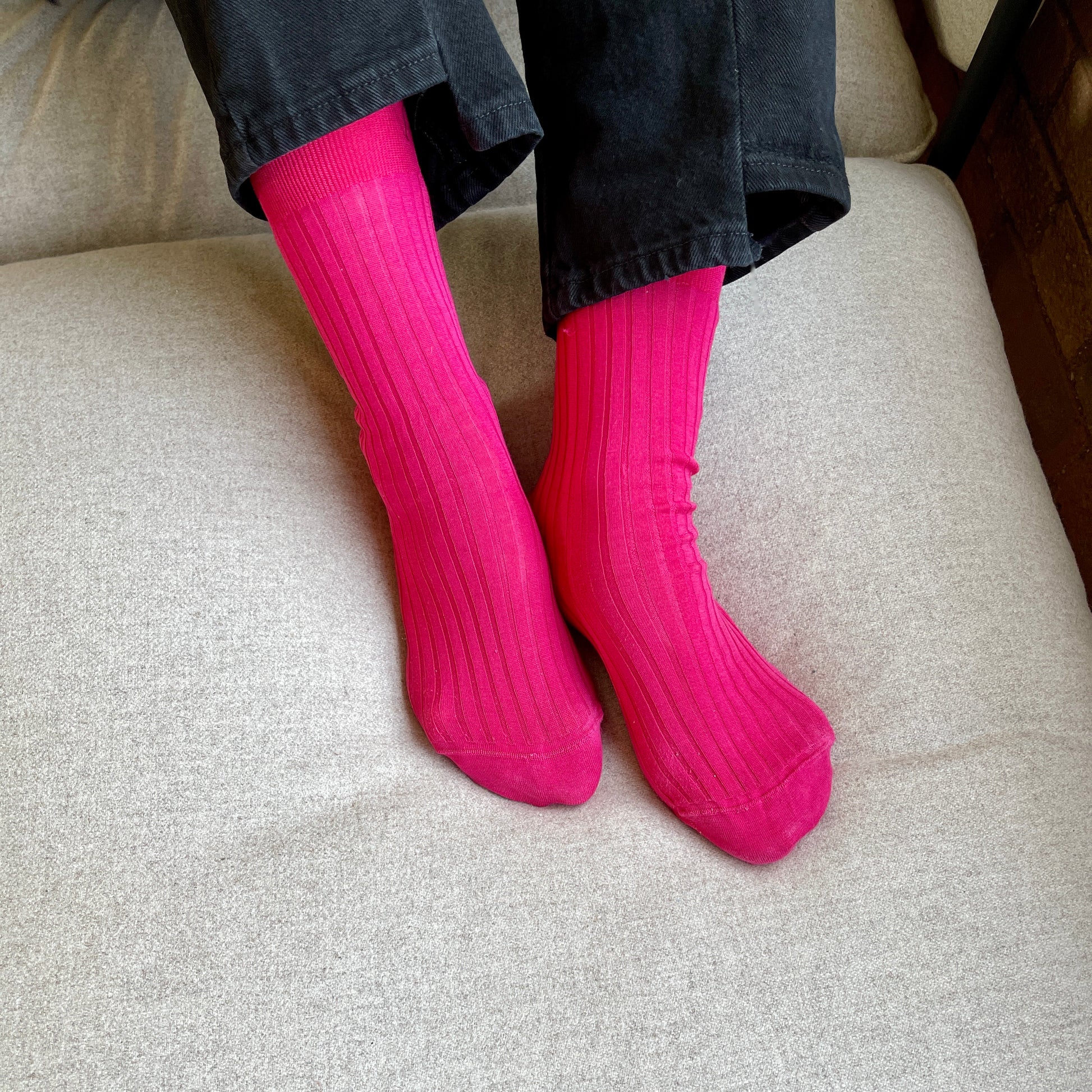 Add a playful splash of colour to your wardrobe with our Italian-made bright pink dress socks.