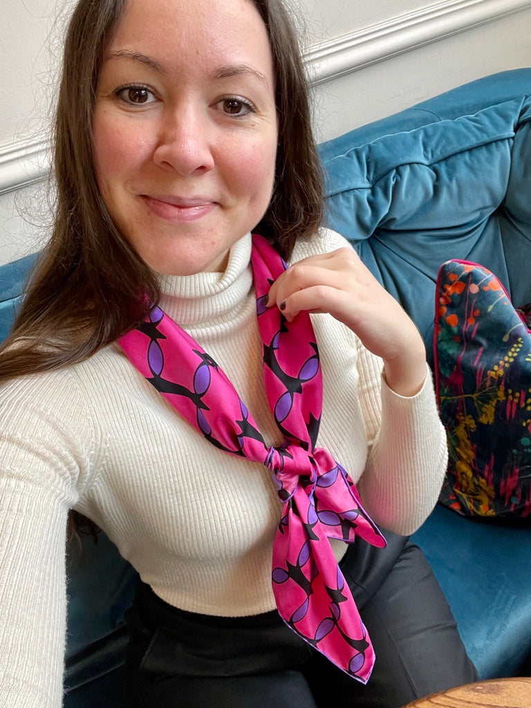 Wrap it around your neck for a pop of colour, tie it in your hair for a fun statement, or style it on your bag for a vibrant finishing touch.