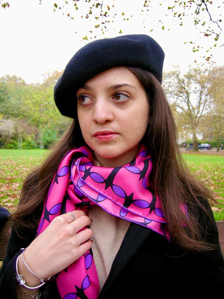 Bold, expressive, and full of personality, this pink and purple COLUCCI monogram scarf brings a joyful burst of colour to any outfit.