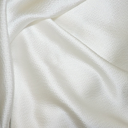 A refined silk distinguished by its subtle seersucker-like texture, creating a soft, pearlescent surface. Lightweight and fluid with a gentle sheen, it balances the smoothness of satin with the drape and character of crepe, resulting in a fabric that feels both luxurious and modern. The texture catches light beautifully, giving the shirt depth, movement, and an understated elegance.